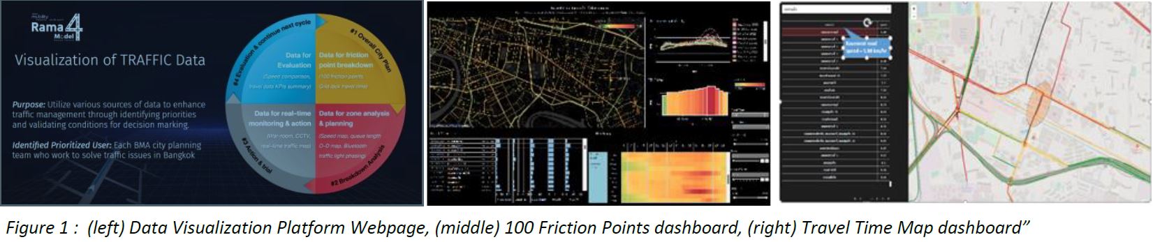 The Rama4 Model team clearly identified the great potential of data driven traffic management through this project. The ability to utilize historical data for trends that can support design of traffic infrastructure like signal timing or the schedule and routes of public transport were clear. The team also recognized that real time data visualized appropriately can support traffic management and enforcement, including incident management and abnormality management. The need for greater open data sharing platforms and partnership to streamline data with traffic management was clearly confirmed.