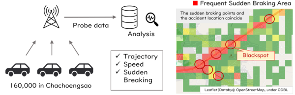 TMF aims to explore new approaches to improve road safety by leveraging advanced data and technology. In collaboration with the Asian Institute of Technology (AIT), TMF conducted the first phase of the project in Chachoengsao province, utilizing data from Toyota vehicles equipped with vehicle probe data. The insights and practical countermeasures identified in this phase will be enhanced with additional datasets and technologies in the second phase, currently underway in the Chatuchak District in Bangkok.